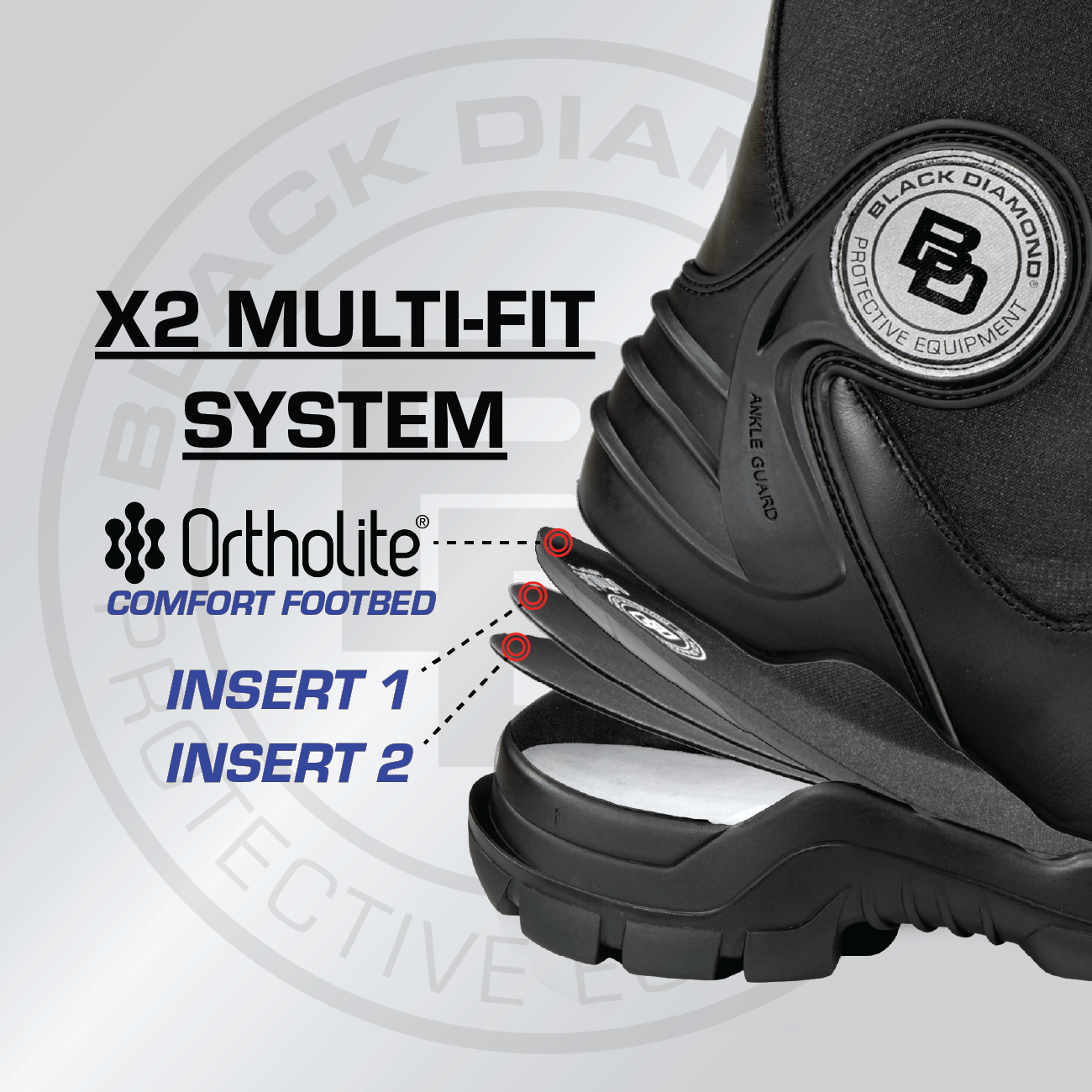Nothing beats a pair of Black Diamond's flagship structural leather fire boots. Our X2 boots use genuine fire-retardant leather and fusion fabric to provide ultimate durable protection. CROSSTECH waterproof membrane and NO liner pull-out design along with our comfort fit plus ORTHOLITE footbed makes the X2 the BEST DAMN LEATHER FIRE BOOT. PERIOD.